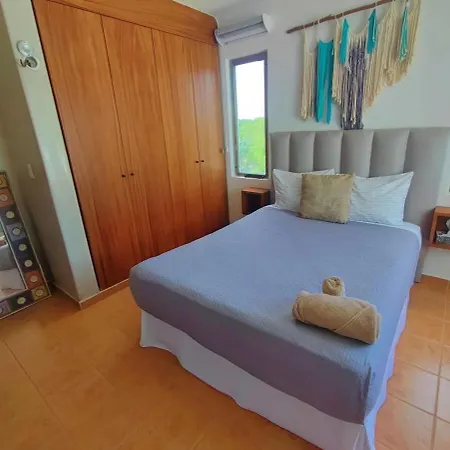 빌라는 자체 취사를 위해 부엌을 제공합니다. 이슬라 무헤레스, 킨타나로오 공항까지의 거리는 10km 정도입니다.